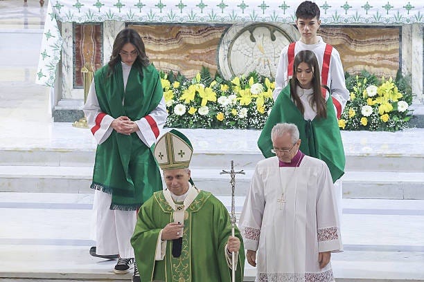 Flanked by Altar Girls, Pope Leo XIV Preaches Preach in Ostia Parish