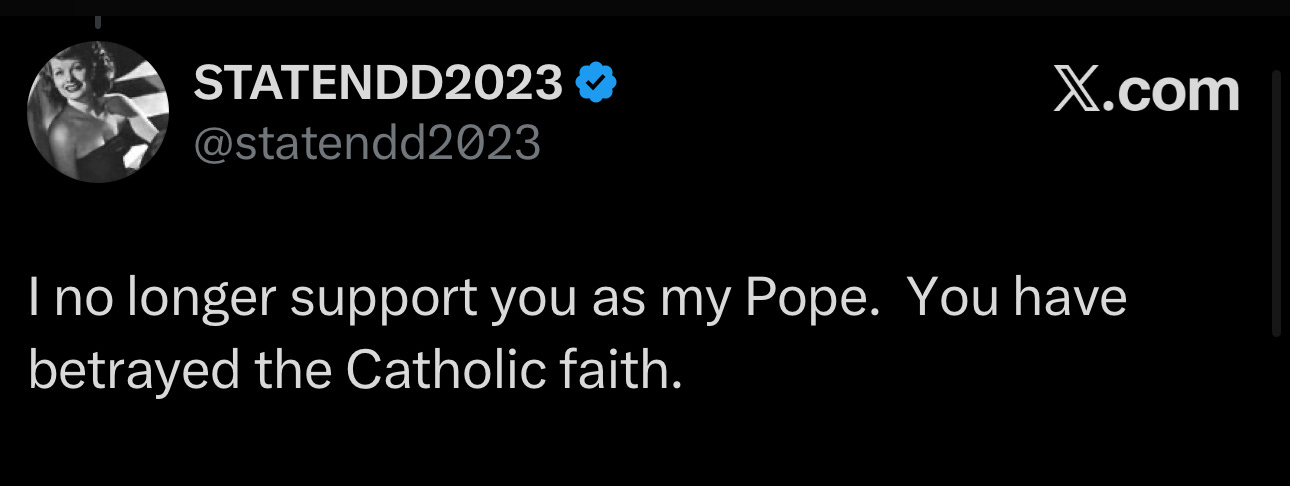 “I no longer support you as my Pope. You have betrayed the Catholic faith,” one irate commenter fumed.