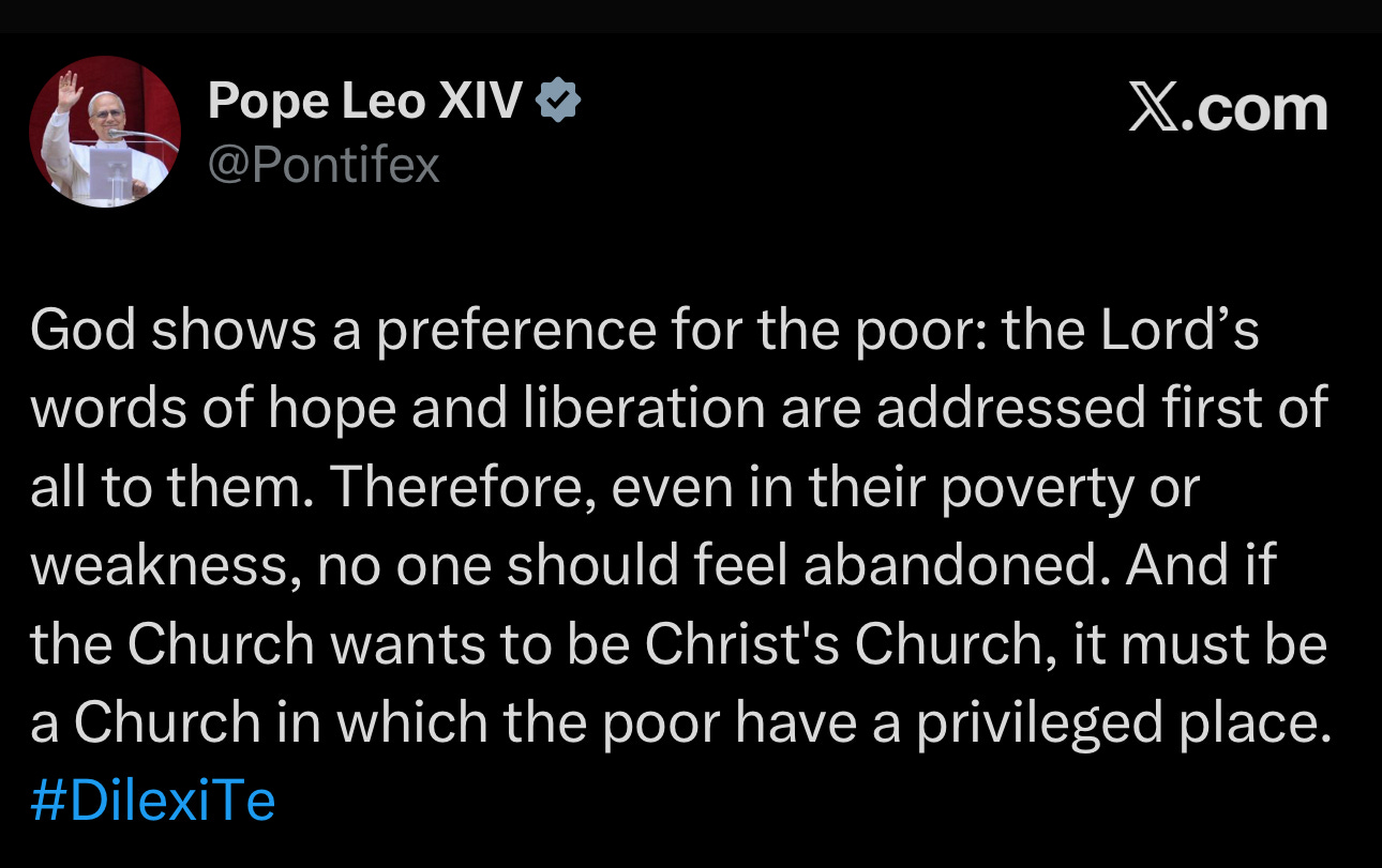 Over the past week, Leo’s official X (Twitter) account posted a series of messages extolling God’s special concern for the impoverished — messages so basic to Christian teaching you’d think they were uncontroversial.