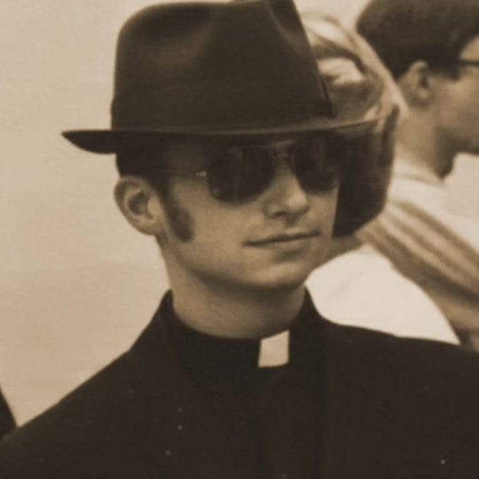 But my money’s on The Blues Brothers. There’s a photo of young Fr. Leo circa 1982 wearing black sunglasses and looking every bit like a Blues Brother.