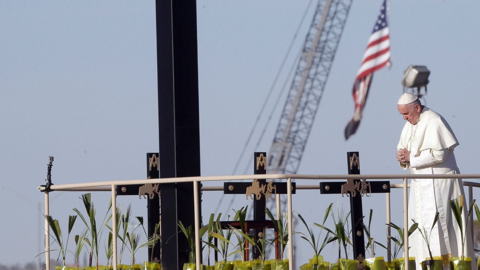 The American pontiff says real Christians build bridges, not barriers — and holds up a U.S. saint as proof.