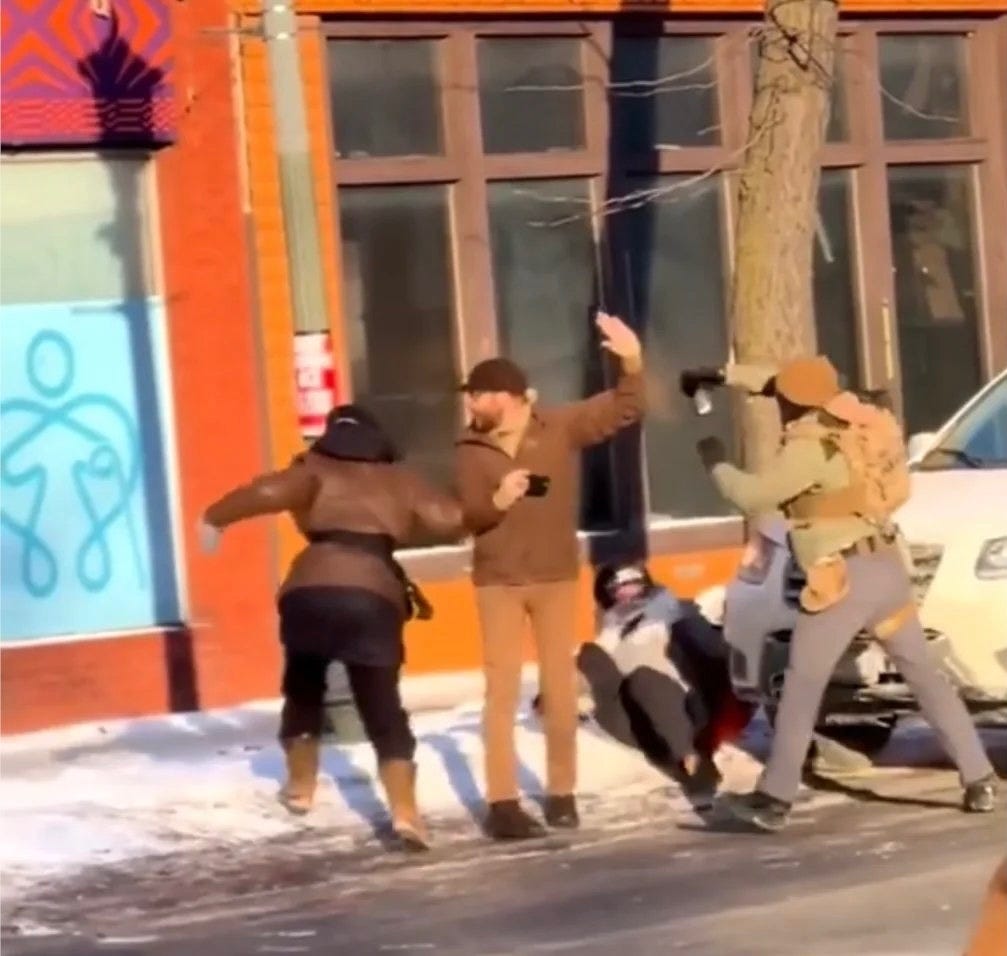These claims collapsed almost immediately under the weight of evidence. Bystander videos showed that Pretti never brandished a weapon; he was holding up his phone and shielding a woman from pepper spray when agents tackled him.