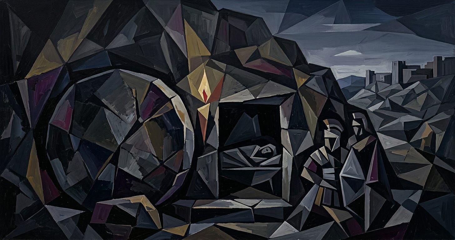 Something harder is being asked of us — the trust of the disciples crouched in a locked room, unable to see what comes next. The stone is still in place. And we are asked to believe anyway.