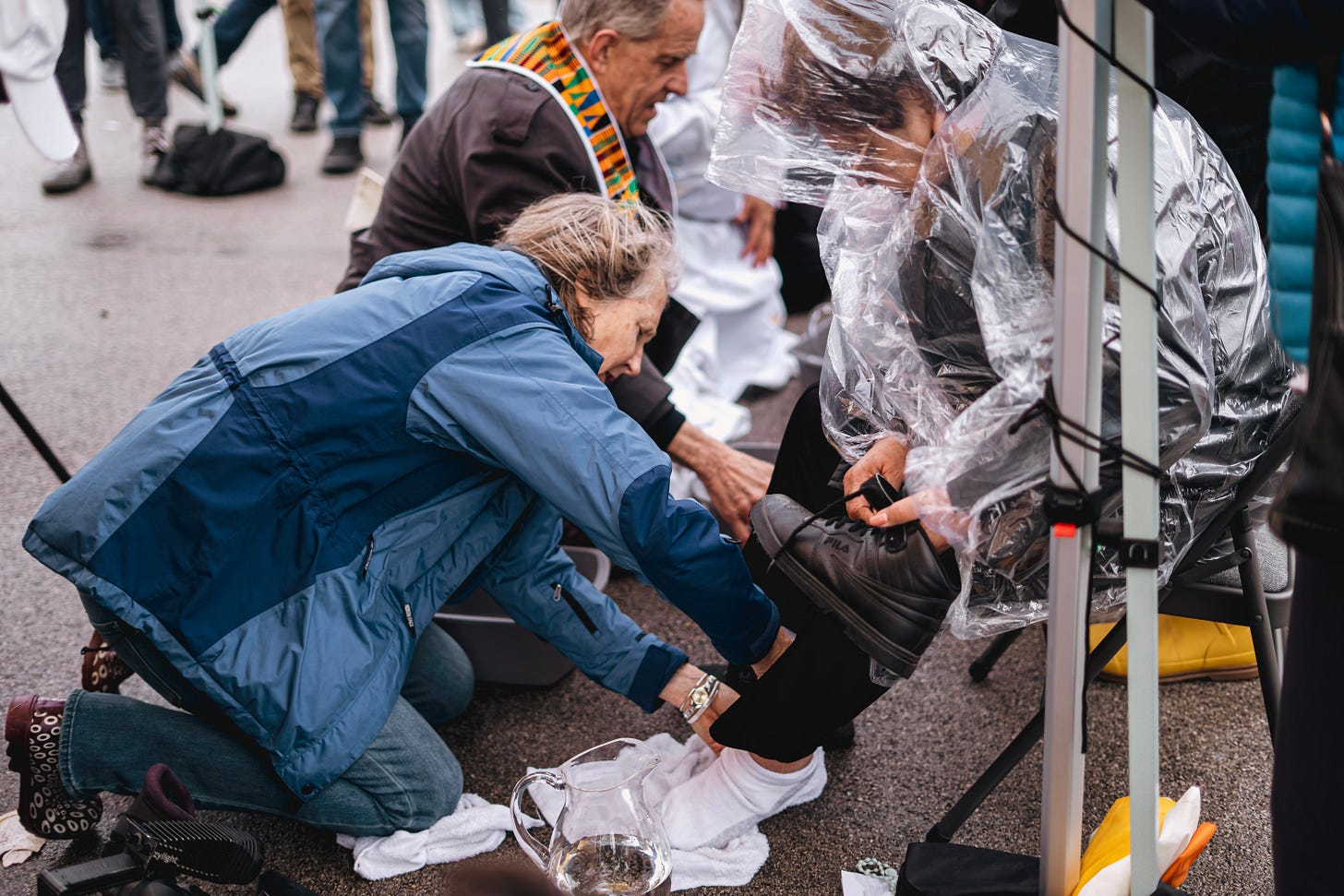 On Holy Thursday afternoon, Father Juan Vargas knelt on the floor of the Broadview Immigration and Customs Enforcement processing facility west of Chicago and washed the feet of a man in shackles.