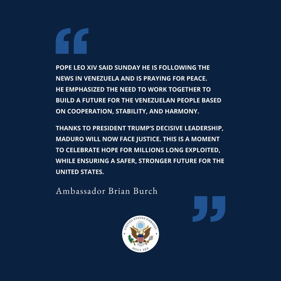 The omission is striking given that Pope Leo’s Angelus appeal — “the good of the beloved Venezuelan people must prevail… overcoming violence and embarking on paths of justice and peace, safeguarding the country’s sovereignty” — directly tempered any endorsement of regime change. Burch’s selective framing thus purposely presented a partial narrative at odds with the pope’s full message.