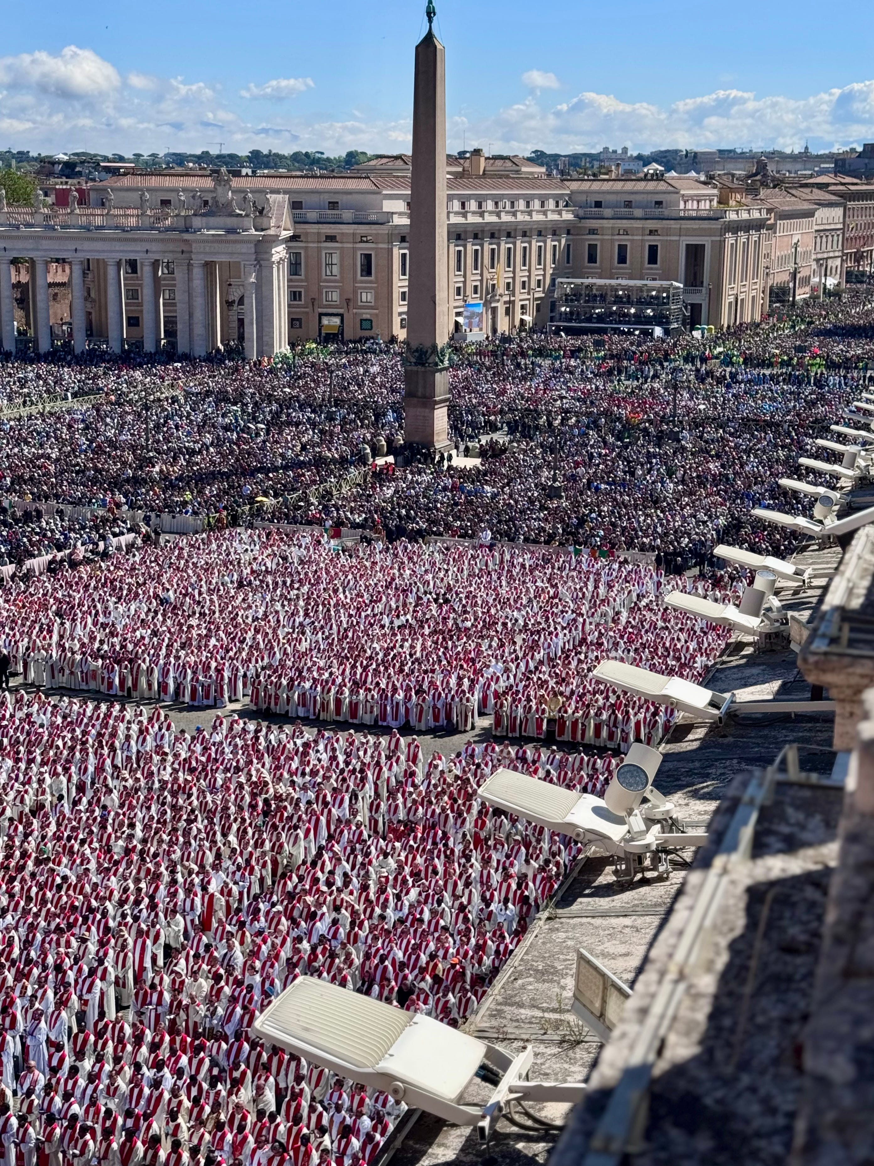 Standing atop the colonnades of St. Peter’s Basilica this morning, I looked out over the hundreds of thousands gathered below and realized something astonishing: I was standing on the same hill where Peter himself — crucified upside down by Nero Caesar — died 2,000 years ago.