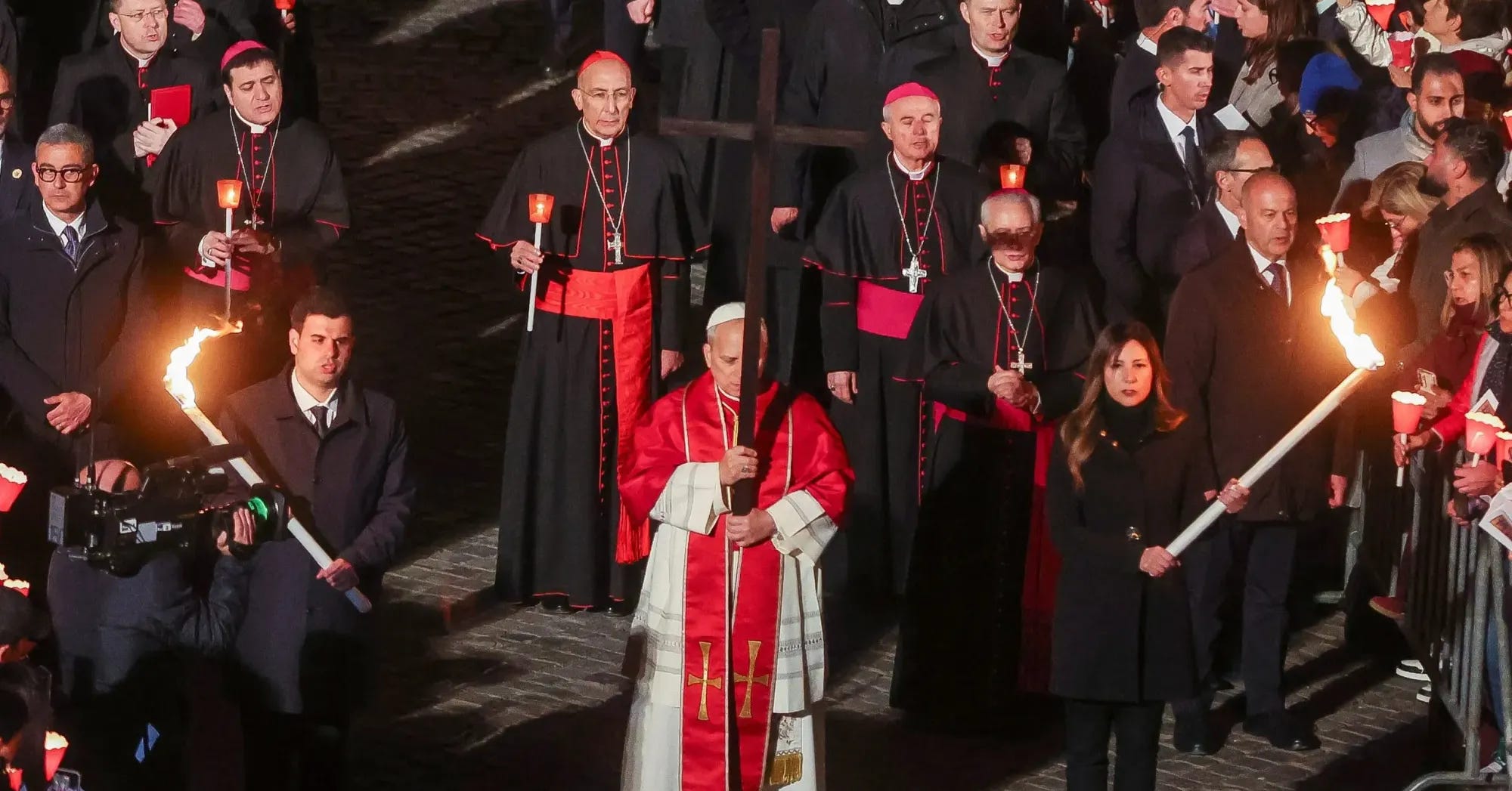 This evening, Pope Leo XIV walked barefoot onto the cobblestones outside Rome’s Colosseum and lifted a five-foot wooden cross onto his shoulders. He carried it through all 14 stations of the Via Crucis before 30,000 people gathered in the candlelit ruins — the first pope to carry the cross for the entire procession since John Paul II handed it off in 1994.
